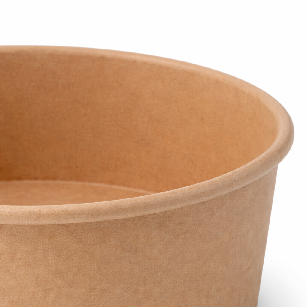 Designed for modern takeaway service, this versatile paper container is ideal for soups, stews, pasta, salads, and steamed dishes. Its practical capacity makes it perfect for single portions, while the round shape ensures easy handling on the go.